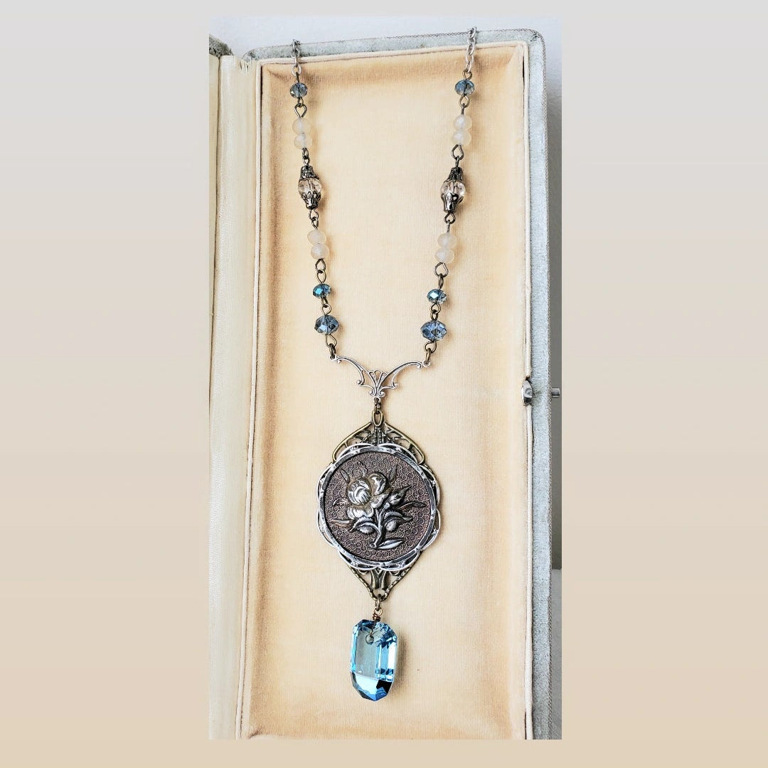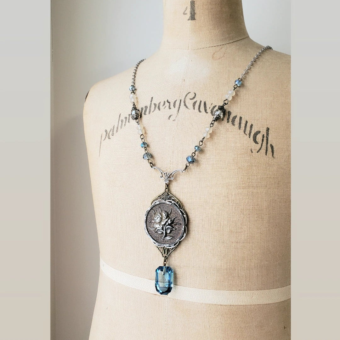 1880's Floral Paris Button Long Necklace