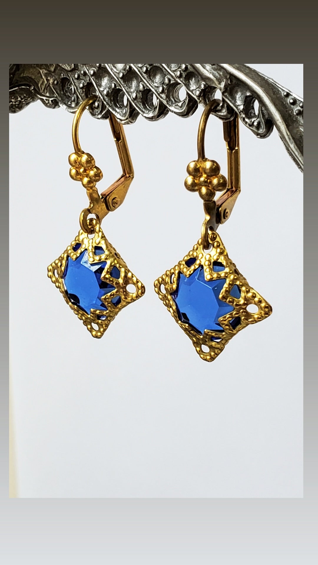 Vintage cobalt blue rhinestones shimmer in these filigree settings.